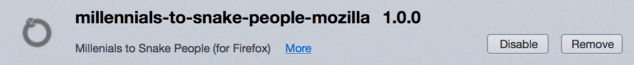 Preferences > Extensions > Uncheck checkbox next to Millennials to Snake People