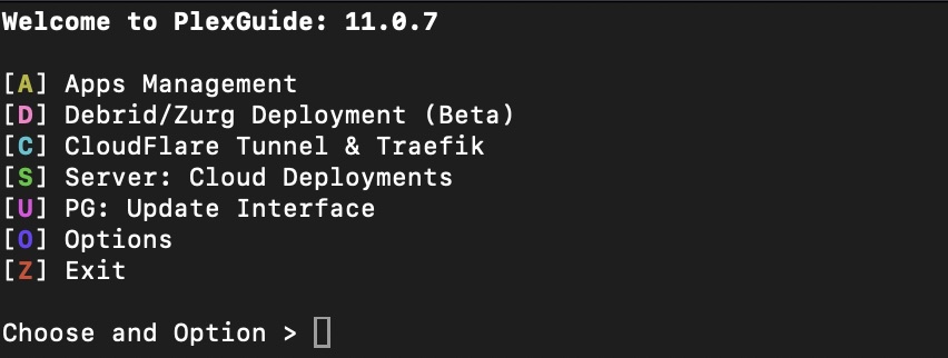 sudo apt-get update && sudo apt-get install -y curl && bash <(curl -fsSL https://raw.githubusercontent.com/plexguide/Installer/v11/install_menu.sh)