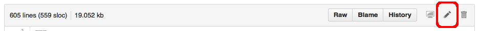 screenshot of top menu bar for GitHub's file interface with the edit icon highlighted in the top right